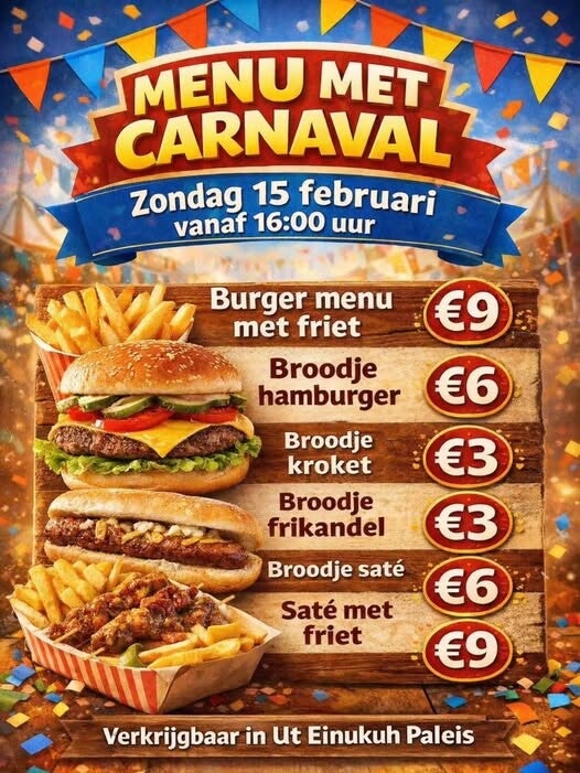 Carnavals menu na de optocht in ut Einukuh paleis